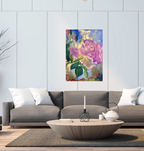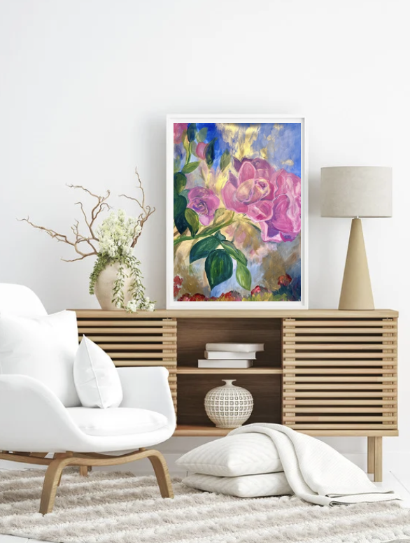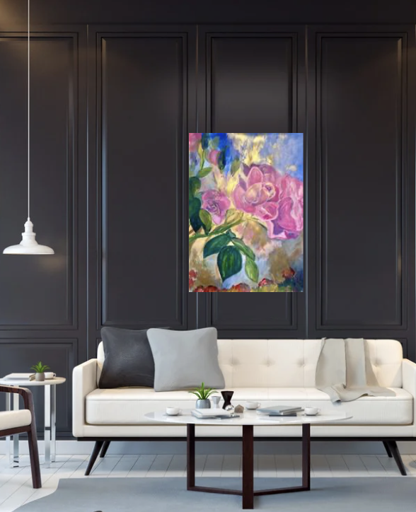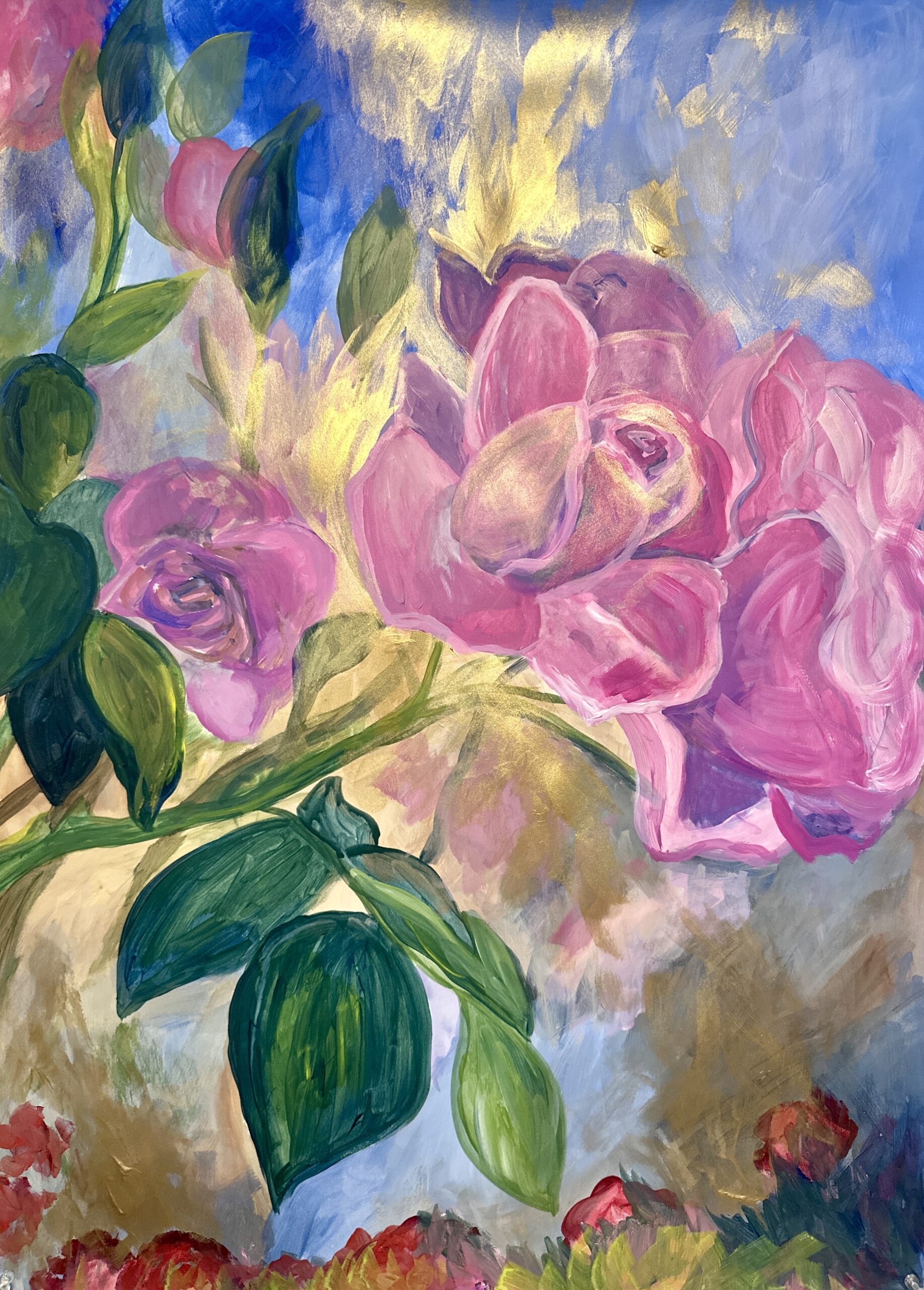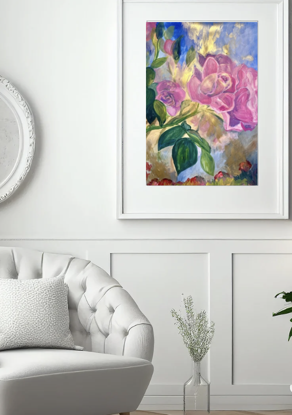 Experience the elegance of original fine art crafted on premium archival paper. This stunning piece features vibrant acrylic and shimmering gold paint, enhanced with translucent light effects that bring depth and luminosity to the artwork. Measuring 22×30 inches, it’s a perfect statement piece to elevate any space with timeless beauty and artistic sophistication.